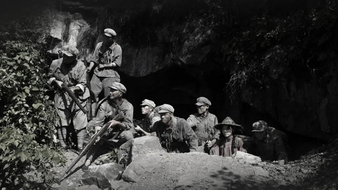 Beyond the Skies was filmed in the Longquan Mountain in Lishui, Zhejiang province. The beautiful scenery in the south of the Yangtze River, including the hills, the stone and trees, is very different from that in the north. When the "color reduction” called by the director appears, the dullness between black and white and colors highlights the tone of gray, making the overall picture more depressing and better matched to the vanguard’s atmosphere in the final battle. More interestingly, the mountain clouds in many shots are the natural ones at an altitude of 2000 meters instead of the artificial effects created by releasing dry ice. All these clouds used to cover the martyrs, but now in the natural gift, the actors and heroic spirits get intertwined inside like a dream. At the end of the film, the rain of blood suddenly falls; the scene gradually vanishes with the fading colors and (gun) sound also changes the common style of heroic farewell, turning the focus on the end of war to the sigh of the soldiers’ fate. The technique of using scenes to convey emotions and using scenes as metaphors in the Beyond he Skies indeed brings a poetic sense, which is unique among the realistic war films.