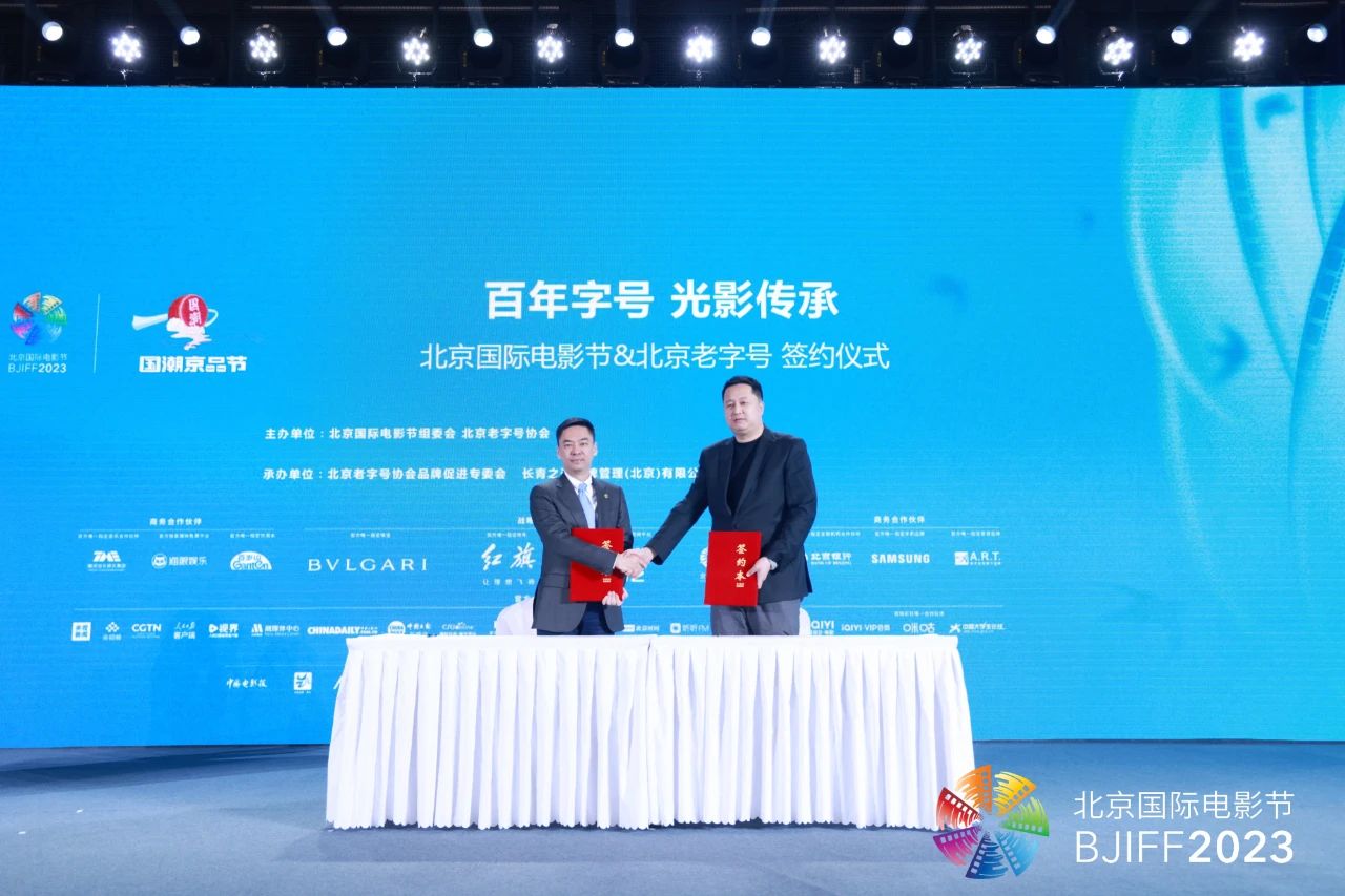 Cui Yan, Director of the BJIFF Operations Center and Jacob Wong, Director of HKIFF Industry of the Hong Kong International Film Festival Society (HKIFFS) signed agreement and took group photo. The BJIFF cooperated with the Beijing Time-Honored Brands Association to fully explore the excellent resources of the film industry and the fast-moving consumer industry. Through cross-border cooperation, it will bring better experience to film fans and happy hours to the masses, and play a positive role in promoting the economic recovery in Beijing. To achieve the effect of carnival throughout the city, a total of 1,000 stores of 20 members of the Beijing Time-Honored Brands Association participated in the welfare activity for film fans. The strategic cooperation between the Beijing Time-Honored Brands Association and the BJIFF will bring more opportunities and markets to promote the common development of Chinese traditional culture and film industry.