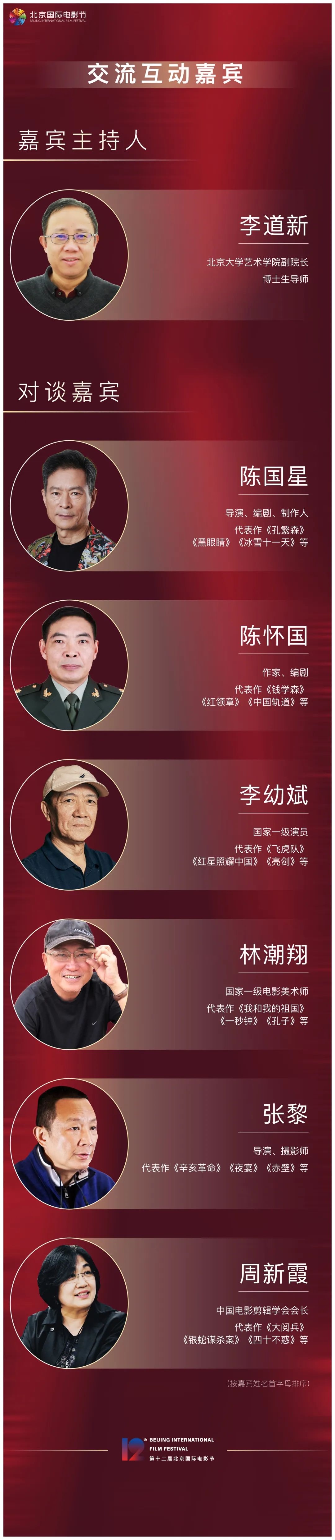 The panelists will be director Chen Guoxing, screenwriter Chen Huaiguo, leading actor Li Youbin, art director Lin Chaoxiang, cinematographer Zhang Li and editor Zhou Xinxia. The moderator will be Professor Li Daoxin from Peking University.