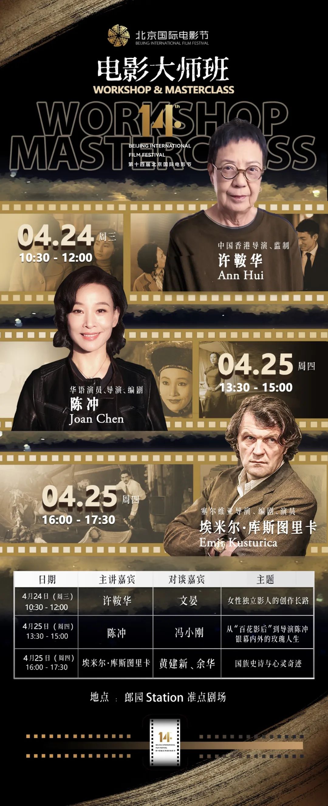 At this year's BJIFF Workshop & Masterclass, we’re honored to invite three world-renowned filmmaking masters -- Emir Kusturica, Serbian director, screenwriter and actor, Ann Hui, director and executive producer from Hong Kong, China, and Joan Chen, Chinese-speaking actress, director and screenwriter. The three filmmakers as keynote speakers will share their filmmaking experience and insights, and embark on a journey of film art together with moviegoers.