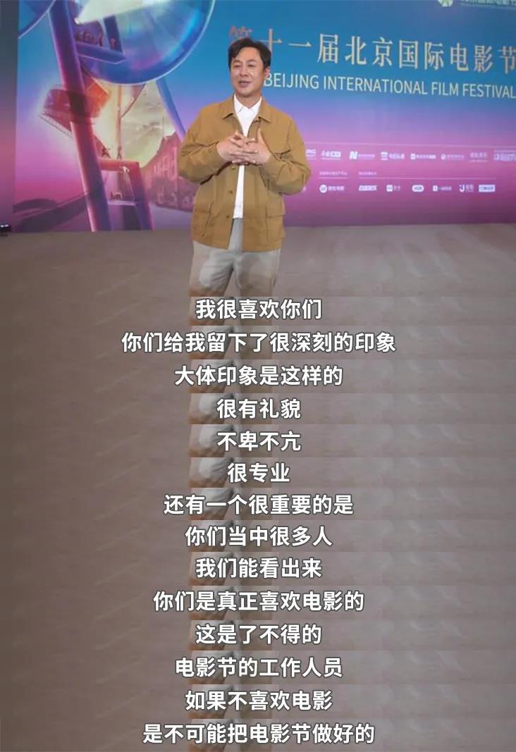 After the press conference of the Jury of Tiantan Award, actor Zhang Songwen returned to the venue to express his gratitude to the staff of Organizing Committee of the Beijing International Film Festival. He said he was deeply impressed by the courtesy and professionalism of the staff, and acknowledged their love for the film, which moved and inspired everyone. The Beijing International Film Festival will continue to work with all filmmakers to create light for the glory future of the Chinese film industry.