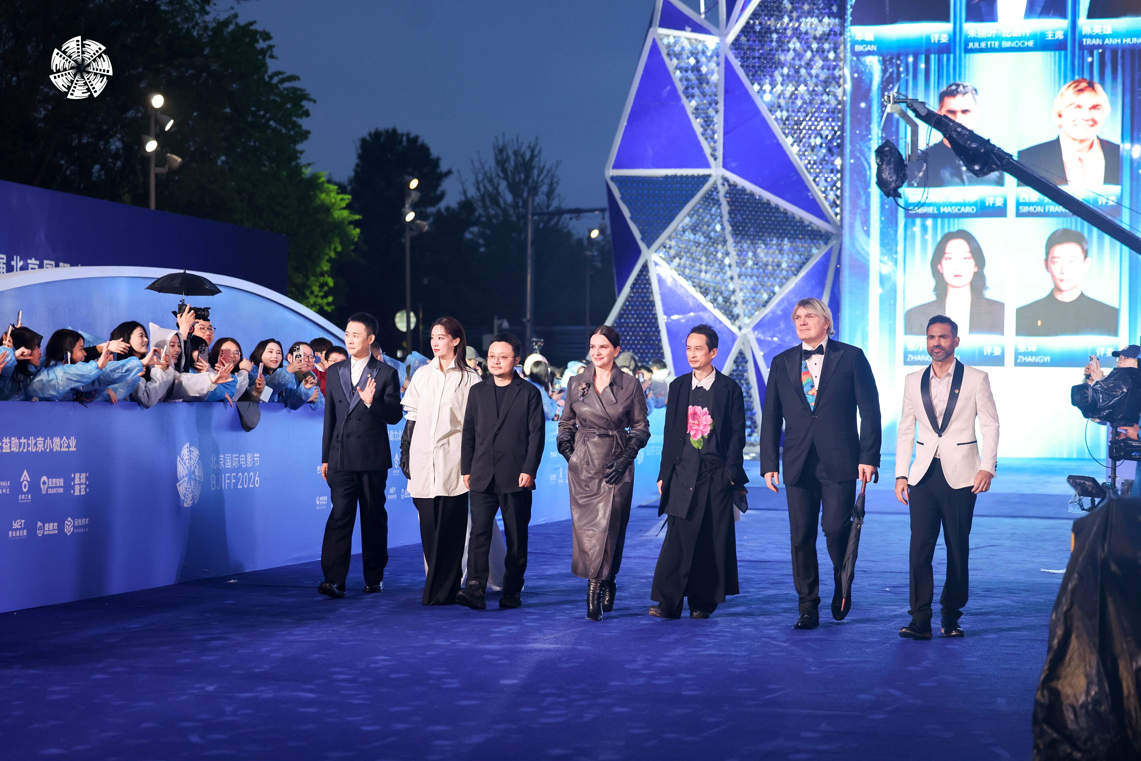 本届北京国际电影节“天坛奖”国际评奖委员会主席由国际知名演员朱丽叶・比诺什担任,评委会由巴西导演加布里埃尔・马斯卡罗、中国导演毕赣、法籍越南裔导演陈英雄、英国作曲家西蒙・弗兰格伦、中国演员张小斐、中国演员张译共同组成。众位评委携手亮相开幕入场仪式,与万千影迷一同见证北影节的高光时刻。