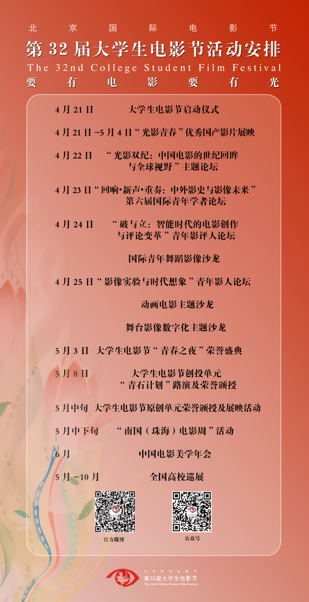 转载自北京大学生电影节微信公众号——“北京国际电影节·第32届大学生电影节活动时间表来啦!”