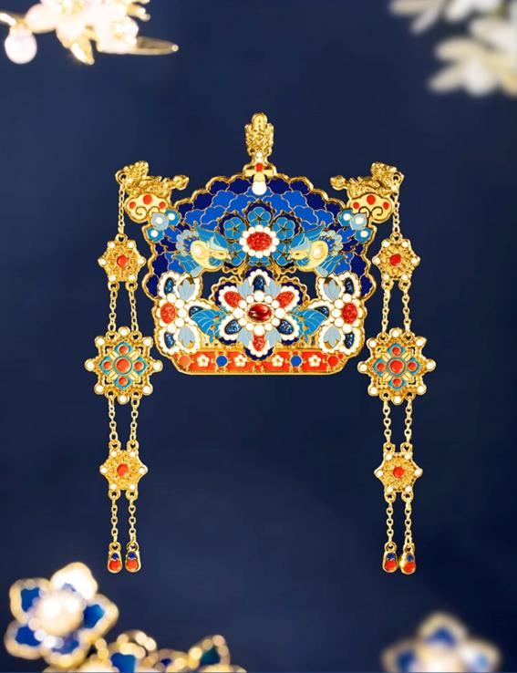有凤来仪凤冠冰箱贴:造型以明万历点翠嵌珠石金龙凤冠为灵感,富丽明艳,翠蓝华贵,尽显珍宝之美。