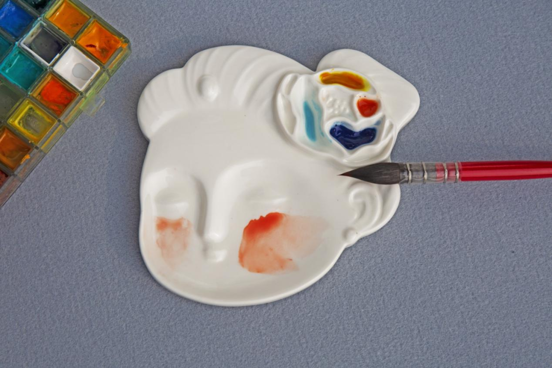 荣宝斋·仕女陶瓷盘:以荣宝斋木版水印《簪花仕女图》为创作灵感,设计结合了笔搁、储墨与调色功能。高温高白泥料烧制,不脱色不褪色,经久耐用,易清洗。
