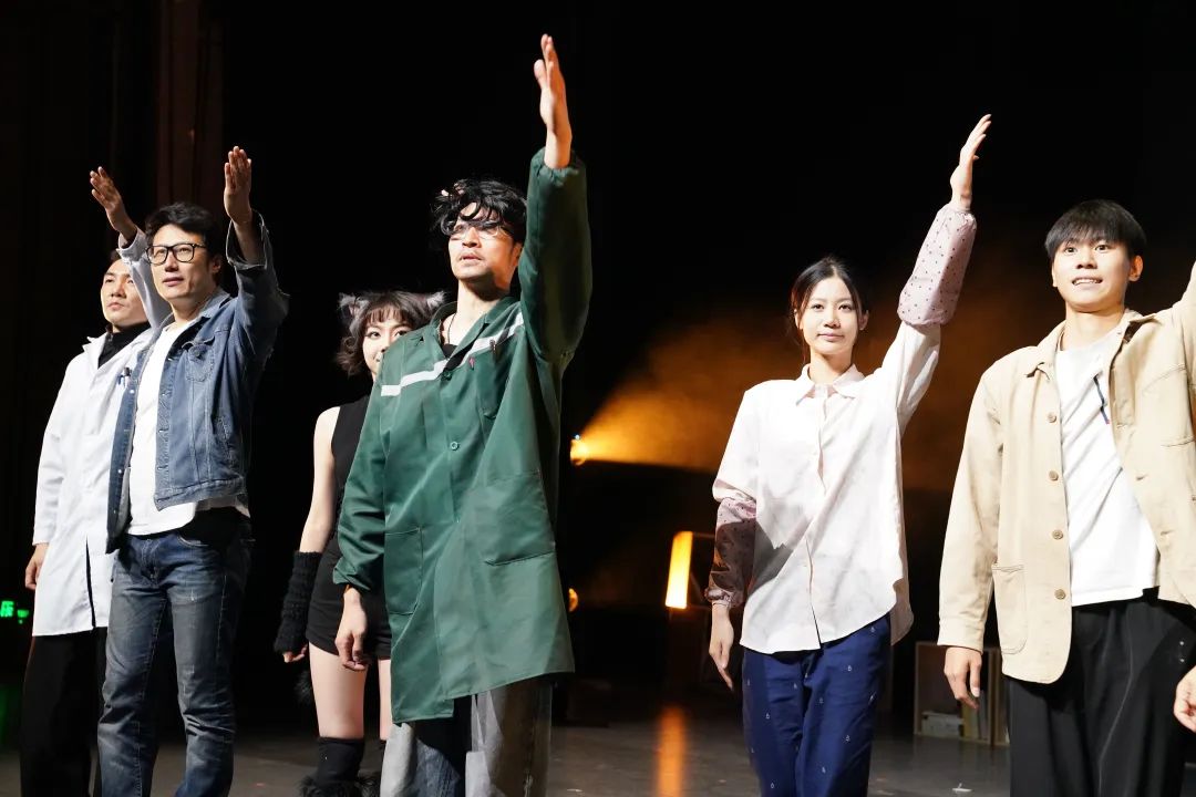 《何必呢,何毕》的创作是一次惊奇的冒险:从获奖剧本到舞台改编,从文本解构到即兴碰撞,青年创作者们以冷峻的幽默切开时代的病灶,又在“未完待续”的留白处埋下希望的种子。那些关于孤独、焦虑与自我救赎的诘问,最终化作舞台上欢快的舞蹈,作为对于现实世界的有力回应。