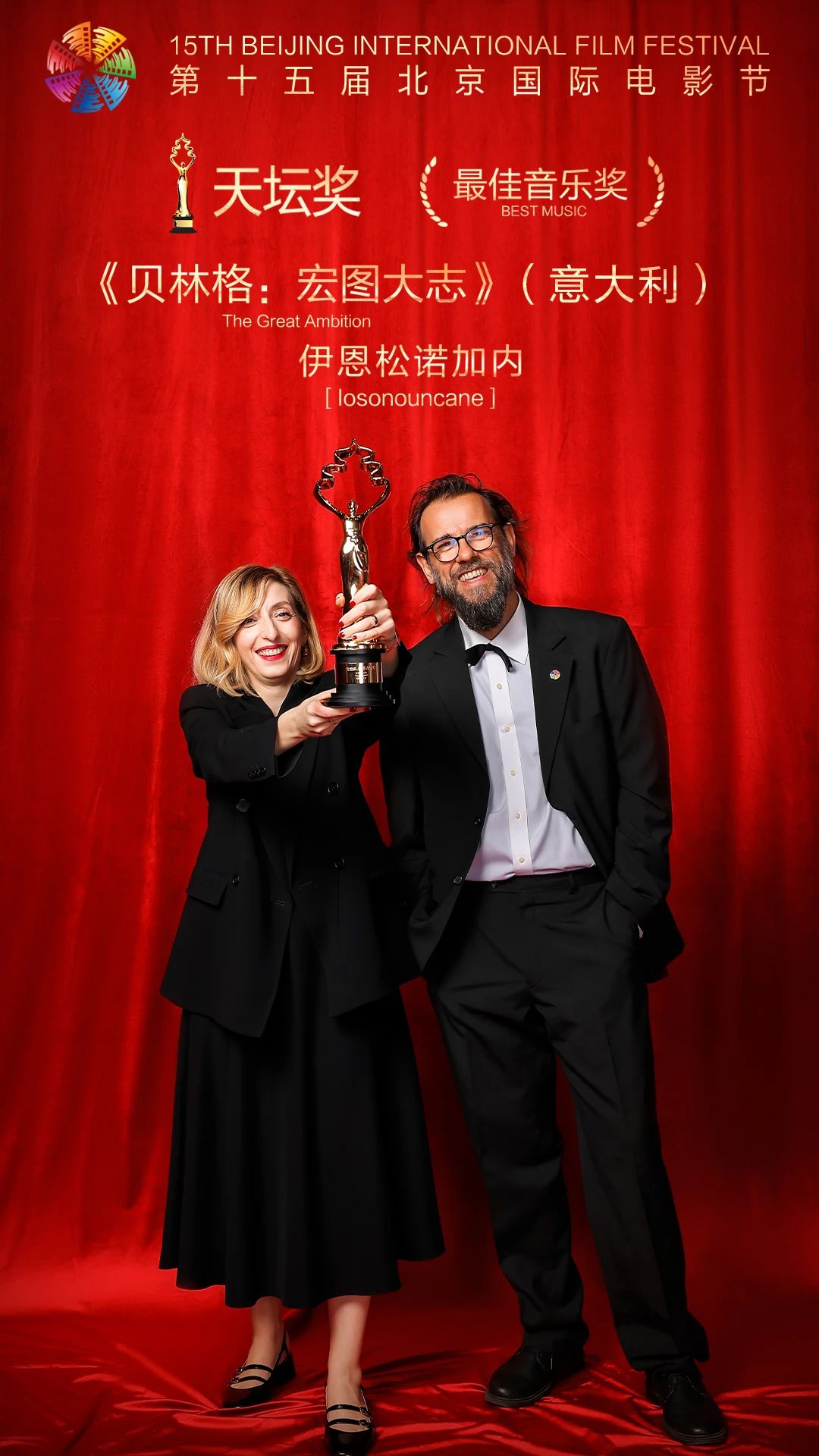 4月26日,“天坛奖”入围影片《贝林格:宏图大志》在英皇电影院举行首映礼,制片马尔塔·唐泽利、导演安德烈·赛格亚来到映后现场,该片斩获第十五届北京国际电影节“天坛奖”最佳音乐奖。