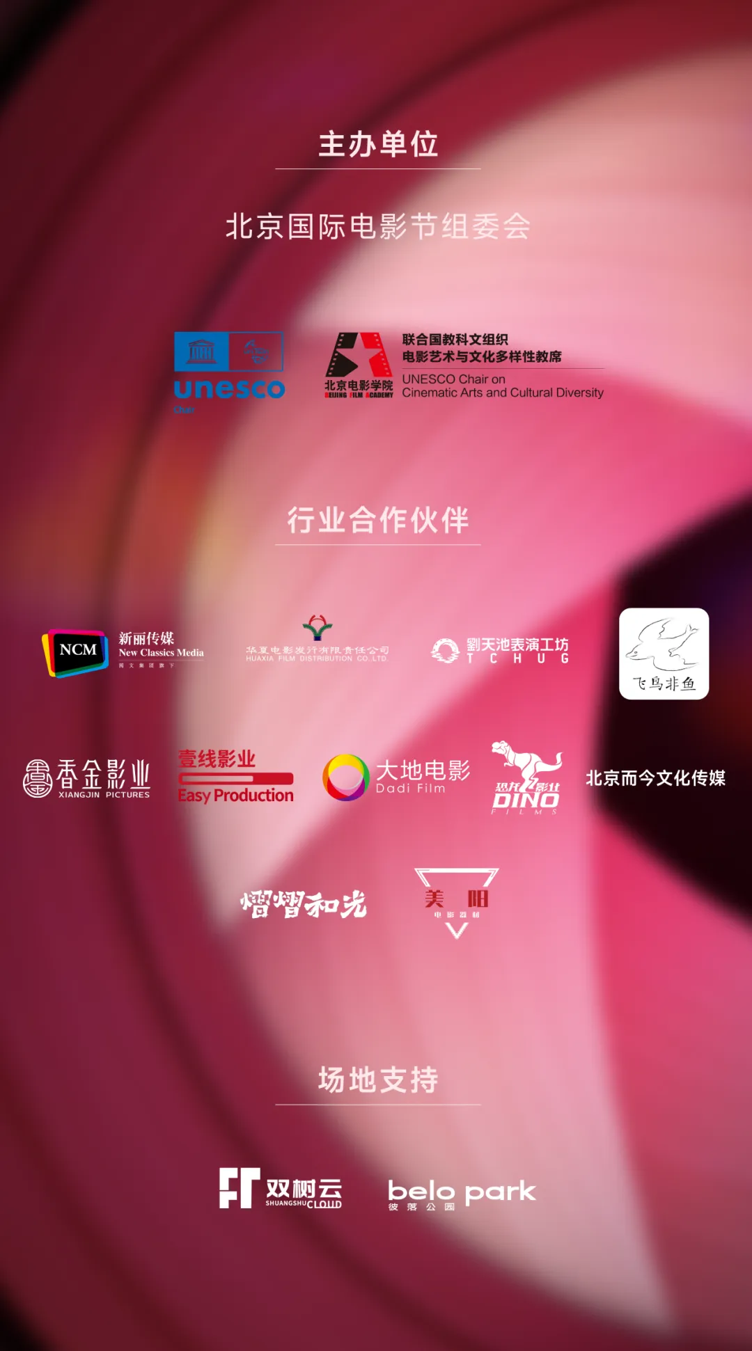 第十五届北京国际电影节新荷NEWHER女性电影单元的成功举办离不开电影节战略合作伙伴、官方唯一指定珠宝品牌宝格丽对本单元的大力支持!同时也感谢美阳电影器材、熠熠和光等合作伙伴的支持;美阳电影器材与熠熠和光分别以设备支持与后期制作赋能,助力短片从纸面走向银幕。此外,感谢华夏电影发行有限责任公司、新丽传媒、刘天池表演工作坊、香金影业、飞鸟非鱼、壹线影业、恐龙影业、大地电影、北京而今文化传媒等行业伙伴的支持与鼓励,正是新荷NEWHER“联合行业力量,培育创作新声”的最好诠释。同时,感谢赵淑珍、李纯、傅菁、刘美含、张晔子、曾梦雪、刘畅等演员的倾情助演,也为影片增色不少。