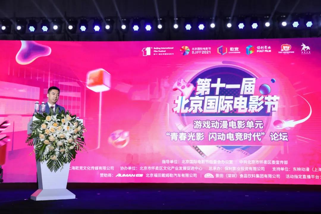 2021年9月22日,由北京国际电影节组委会办公室、中共北京市怀柔区委宣传部组织指导、上海乾竞文化传媒有限公司主办、北京市怀柔区文化产业发展促进中心协办、保利影业投资有限公司总承办的第十一届北京国际电影节“游戏动漫电影单元”在国家中影数字制作基地启幕,今日上午本单元论坛邀请了北京广播电视台北京国际电影节运行中心主任、北京国际电影节组委会办公室执行副主任崔岩;中共北京市怀柔区委宣传部副部长吕晓国;北京市怀柔区文化产业发展促进中心党组书记、主任,杨宋镇党委书记于德利作为本次论坛的重要嘉宾出席活动。