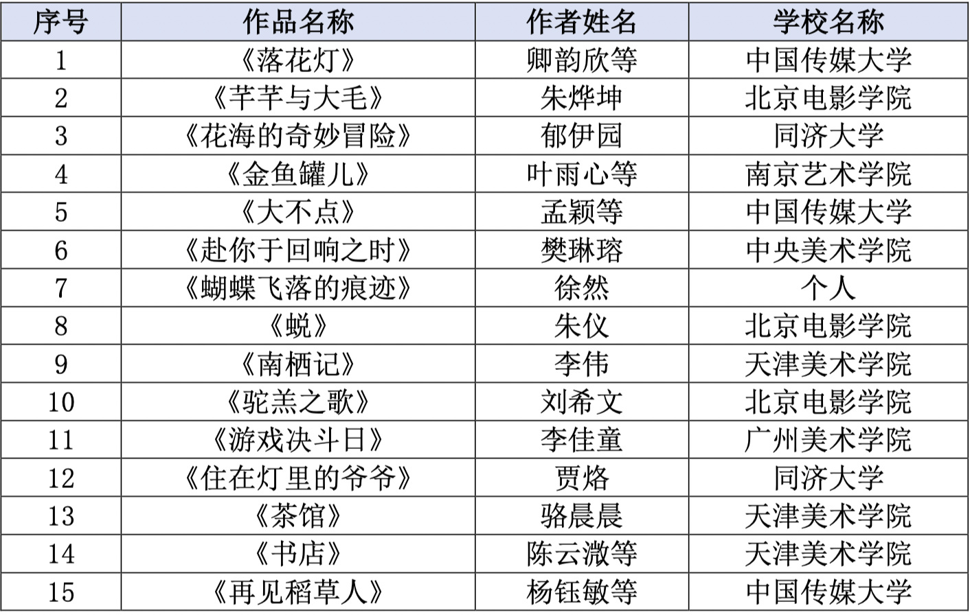 ◢【优秀动画短片】获奖名单 ◣