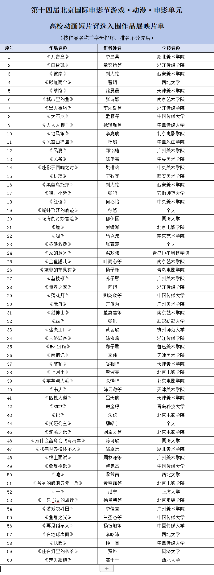高校动画短片展映简介