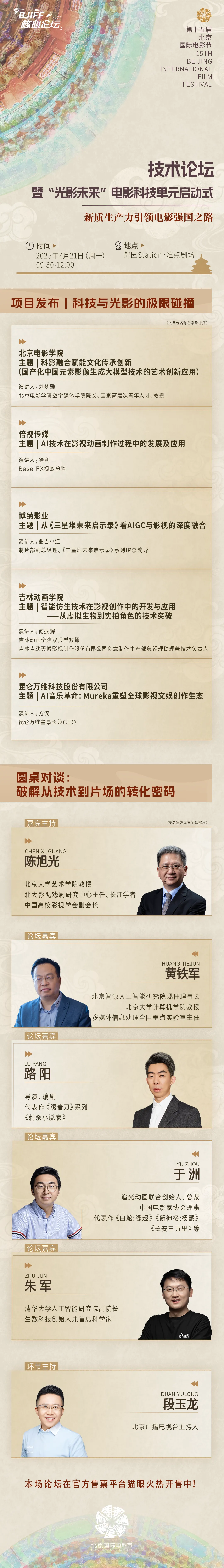 4月21日,来郎园Station亲测未来电影的北京方案,看算法如何点燃东方美学的数字引擎!本场论坛正在官方独家售票平台猫眼娱乐火热开售中!你的“未来观影”体验,即刻开始↓