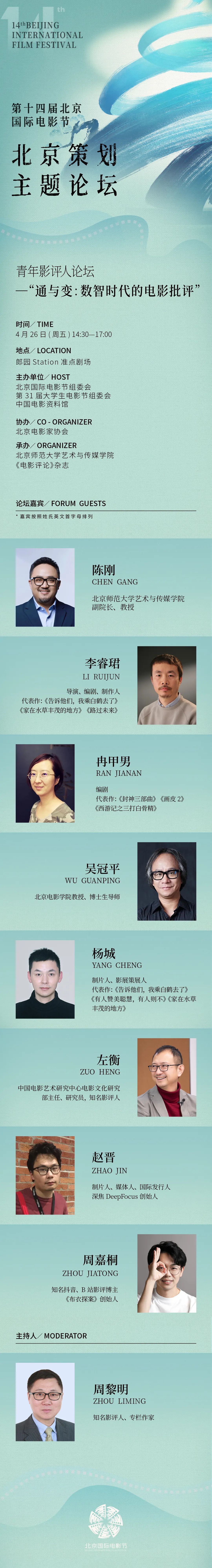 本届论坛以“通与变:数智时代的电影批评”为主题,汇聚吴冠平、左衡、陈刚、李睿珺、冉甲男、杨城、赵晋、周嘉桐等一批近年来有影响力的专家学者、影评人、电影人,共话中国电影批评的当下与未来。