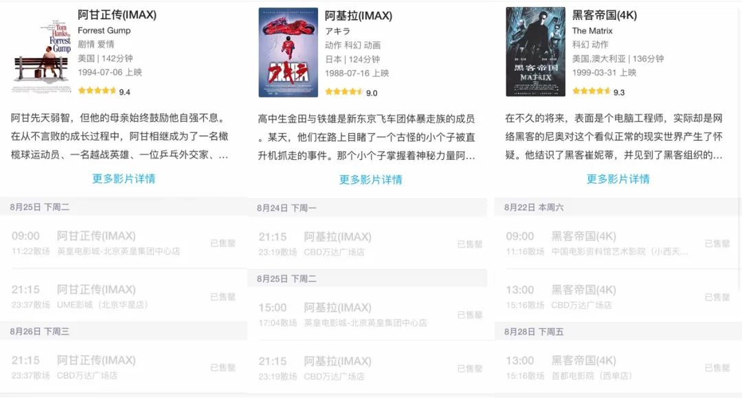 IMAX版《阿基拉》、《阿甘正传》对影迷的诱惑力可以说突破天际,超经典的影片+一流的视听体验,还有比这更爽的事情吗!电影票瞬间秒光的战绩足以说明一切!
