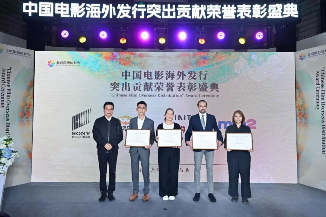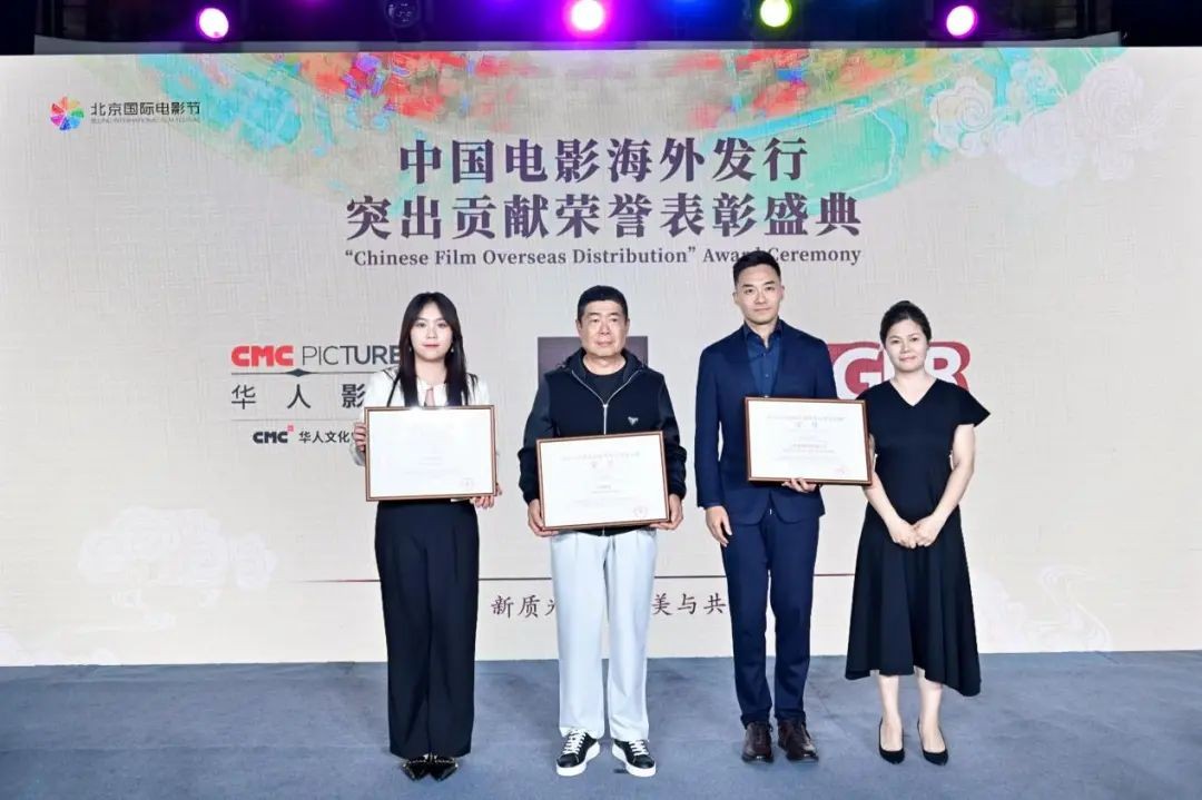 华人影业覆盖全球六大洲103个国家和地区,成功发行《流浪地球》、《哪吒》系列等超百部影片;作为首家实现华语电影海外同步发行的机构,华狮电影十余年来已推动近200部作品进入北美、大洋洲等市场,包括《封神》系列、《八角笼中》等重磅作品。泰阁影视则以全球化发行布局,通过节展放映、翻拍合作等形式提升中国电影国际影响力。北京光线传媒股份公司电影营销发行负责人刘琼芳为上述机构颁发荣誉。