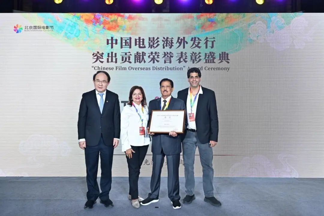 中国国家电影局常务副局长毛羽为阿伦·卡普尔先生和他的夫人苏什玛、儿子阿曼颁发证书,感谢他们不远万里来到北京,并回顾双方在南美的合作渊源。他希望以北京国际电影节为契机,未来能有更多中国影片在秘鲁上映,在世界各国上映。