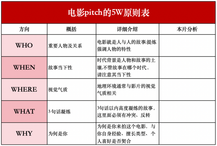 5W Principle Chart for Film Pitching