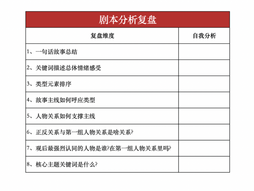 The underlying logic of commercial cinema lies in the tight alignment of core emotions, plot, value positions, and moral stance. "Those directly involved can't see clearly, while onlookers see it all." By sharing this form with trusted individuals to gather feedback, one can quickly assess whether the script is clear and its main storyline is compelling.