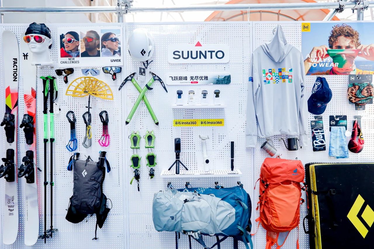 探险大本营现场的好物陈列,观众可以在此体验各种户外用品