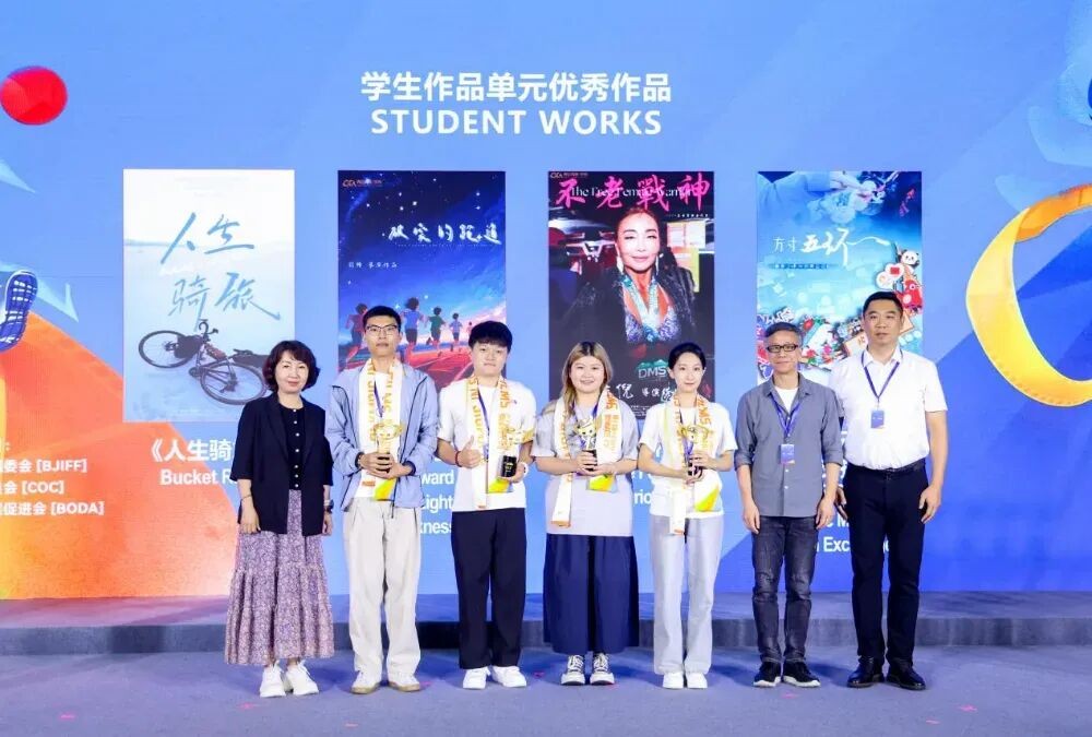 发布现场,多个单元的优秀作品及“最具传媒人气”影片依次揭晓。董健和北京市教育委员会体卫艺处副处长张志华,教授、博士生导师、《北京电影学院学报》主编吴冠平为学生作品单元优秀作品《人生骑旅》《破晓的跑道》《不老战神》《方寸五环——徽章交换中的奥运记忆》颁发荣誉。