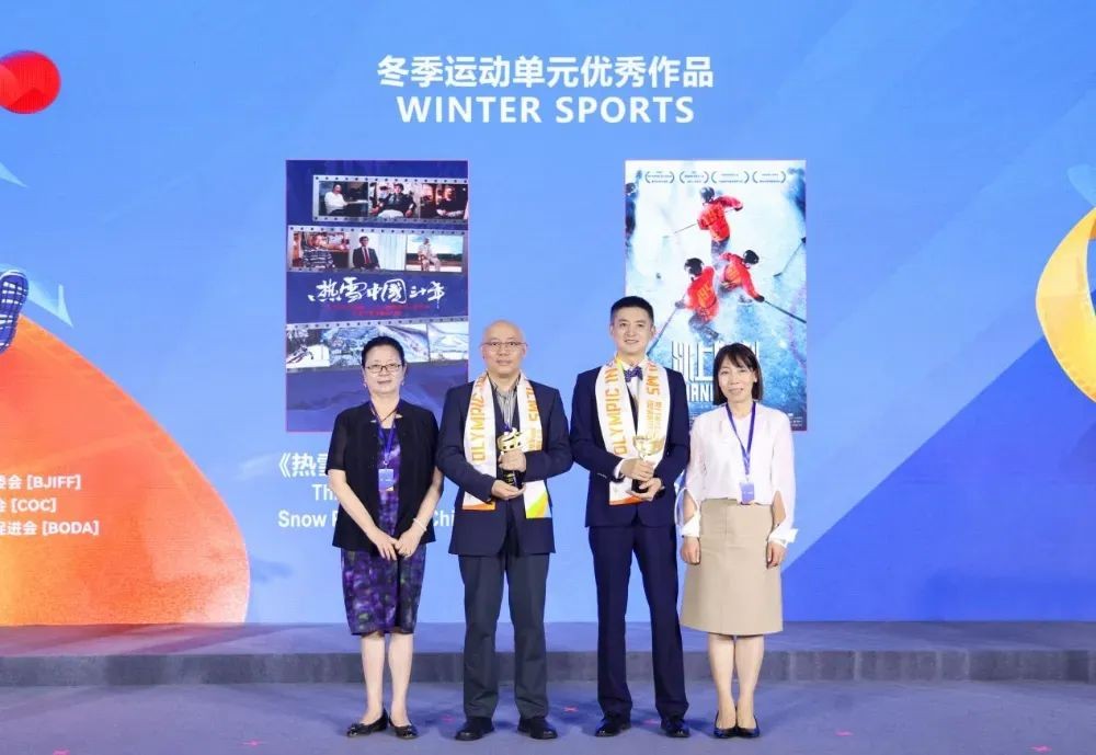 北京市文化局原副局长、北京市电影电视审查委员会审委王珠和北京世奥森林公园开发经营有限公司副总经理董莉娅为冬季运动单元优秀作品《热雪中国三十年》《冰上时刻》颁发荣誉。