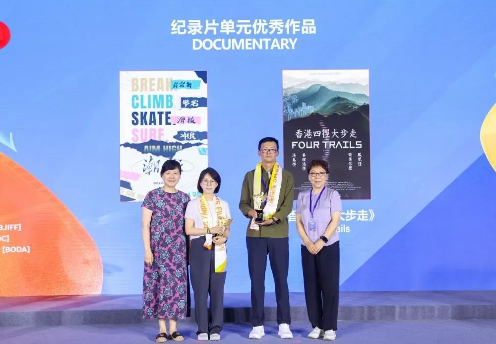 马宏和导演顾筠为纪录片单元优秀作品《潮·跃》《香港四径大步走》颁发荣誉。