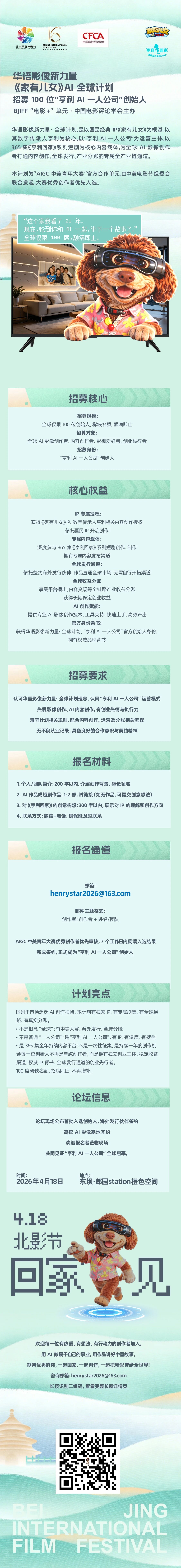 2. 招募对象:全球AI影像创作者、内容创作者、影视爱好者、创业践行者;