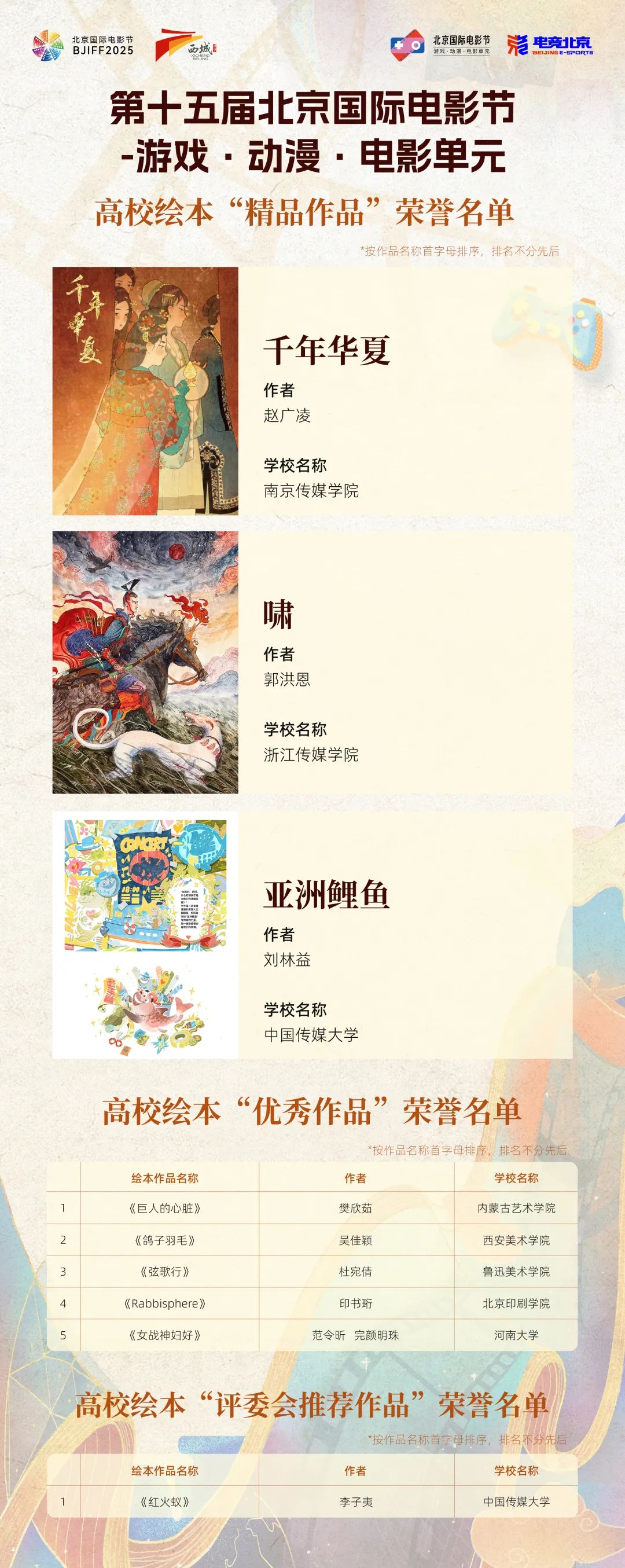 广阳聚星辉,菁英绽锋芒。4月19日,第十五届北京国际电影节游戏·动漫·电影单元——这场聚焦跨界融合与协同创新的行业盛会在北京西城区广阳书院圆满落幕。作为备受关注的青年动漫创作人才孵化平台,高校作品评选在荣耀盛典现场揭晓最终结果,来自全国顶尖院校的年轻创作者们,以充满灵感的笔触与前沿的数字表达,展现了动画漫画领域的无限可能。业界专家、院校师生共聚一堂,共同见证这场属于未来创作人的高光时刻。
