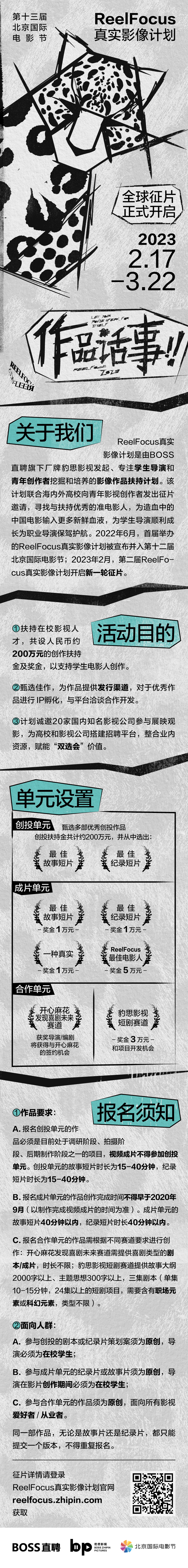 2023年2月17日,第二届ReelFocus真实影像计划征集通道和创投通道现已全面开启,更多征片细则详见下方长图。