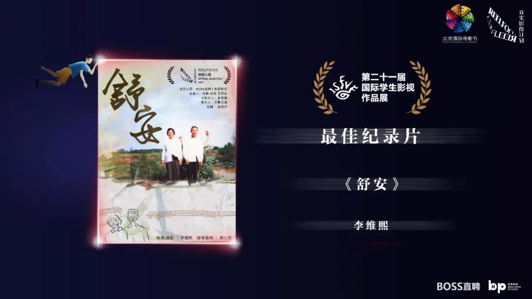 在暂别的时间里,新血影人和作品依旧在发热发光,他们依然在用自己的棱角和锋芒构建一面思考的镜子,用影人的那份冷静与热情映照着社会的角角落落——ReelFocus创投单元决选作品《岸上岸下》、《爱在远山》同时入选了CCDF- INVESTING FOR GOOD 影响力投资单元,最终《爱在远山》在「影响力投资好故事征件」中斩获了特别提及奖和CNEX 提供的三千美金奖励;《FATTY》、《杀死那个报刊亭》分别入围2022 HiShorts!剧情单元和纪录片单元;《舒安》、《FATTY》在第二十一届国际学生影视作品展(ISFVF)中分别获得最佳纪录片奖和最佳导演奖;此外《FATTY》不仅收到了来自万年影业公司的合作意向书,更是在之后的北京电影学院导演系第十一届学生导演奖中斩获了特邀评委会银奖。