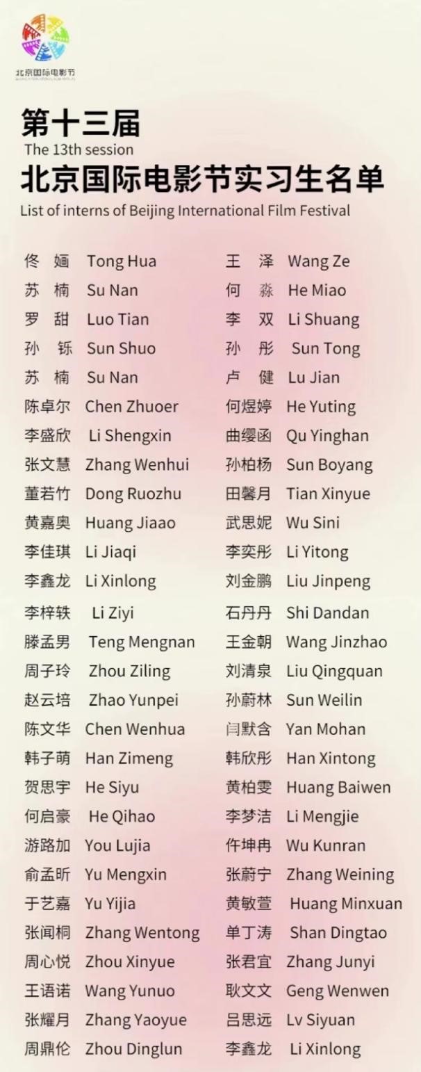 Hello大家好!我是项目部的若竹。经过了层层筛选,我终于来到了梦想已久的北影节!我的工作是协助部门的老师对接论坛、大师班等活动的文案、嘉宾日程和流程等,有时甚至还会和同事讨论到深夜,但是,我一点都不觉得累,我也非常珍惜这次的实习经历,希望在北影节能够增长更多的“小技能”,为北影节贡献我的一点微薄之力,我会认真做好每一份工作,让我们一起在四月的北京共同实现属于我们的电影之梦!