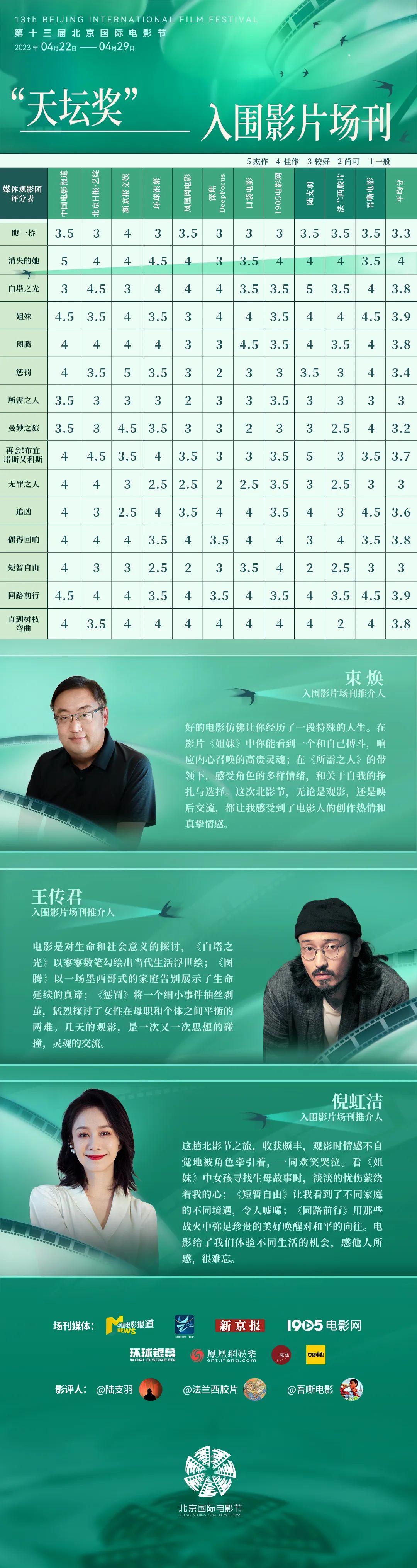 第十三届北京国际电影节“天坛奖”入围影片场刊推介人