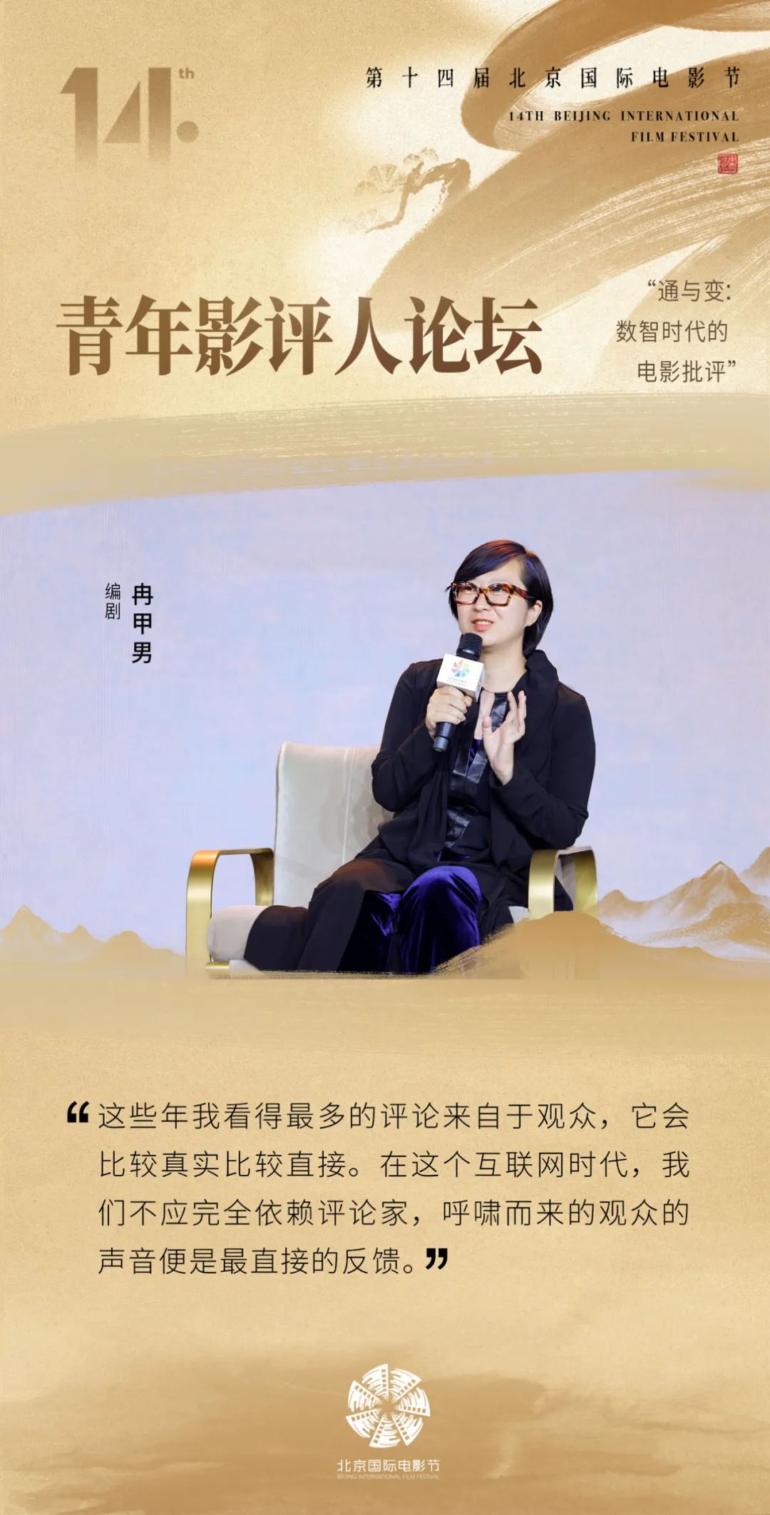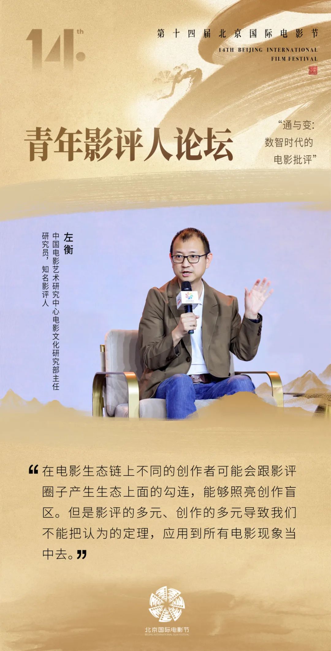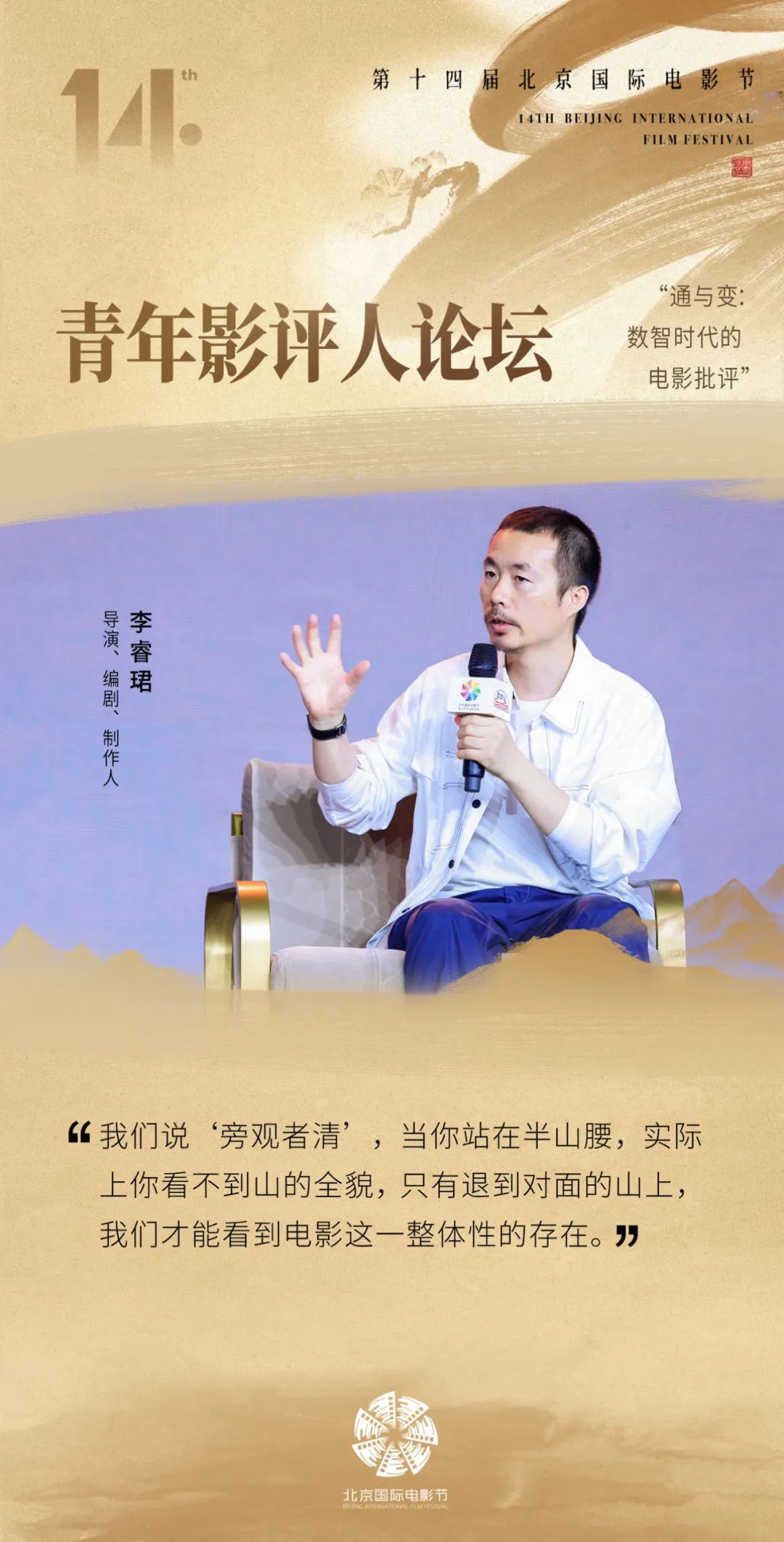 第十四届北京国际电影节“青年影评人论坛:通与变:数智时代的电影批评”于4月25日在北京郎园Station举办。数智时代的到来,让电影批评变得离大众更近,同时也在变化中消解了电影批评的严肃性和学术性。如何掌握这一时期的电影批评书写,成了评论工作者急需解答的问题。在论坛上,不同领域的评论工作者发表了他们的见解。北京师范大学艺术与传媒学院副院长、教授陈刚说“数字技术、人工智能的快速发展与迭代为电影评论带来了新的媒介平台、创作力量与话语空间,也让电影创作与电影评论的关系变得更加复杂而有趣。”制片人、影展策划人杨城认为电影评论是“利于整个艺术市场发展,有利于系统地去了解艺术家”。