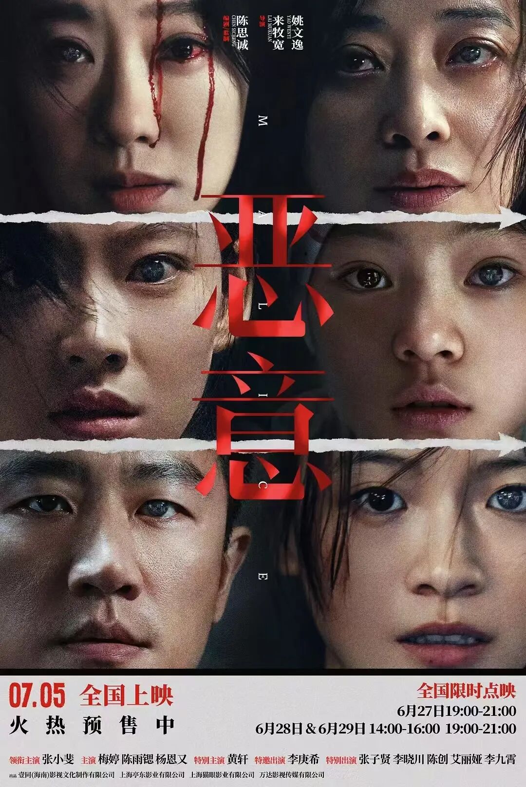 电影《恶意》由陈思诚编剧、监制,来牧宽、姚文逸执导,在今天7月4日14:00-22:00开启全国限时点映活动,点映及预售总票房已突破3200万,目前预售正在火热进行中,期待与广大观众于7月5日全国上映时,在影院相见!